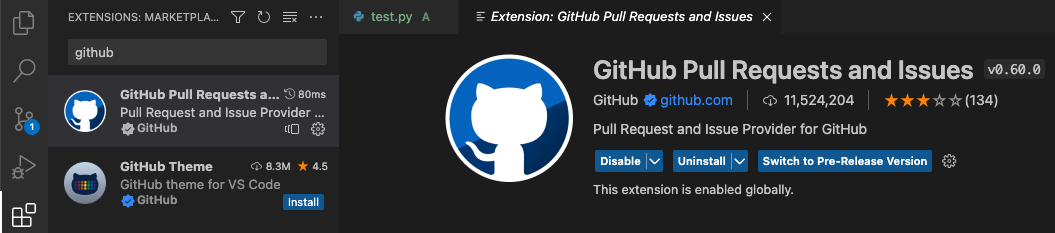"github Pull Requests and Issues" 를 다운 받는다.