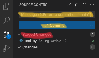 <git add 반영된 모습, Changes 에서 Staged Changes 로 이동>