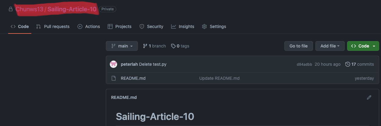 그 후 본인 github 저장소를 확인하면 같은 이름의 저장소가 생긴 것을 확인 할 수 있다.