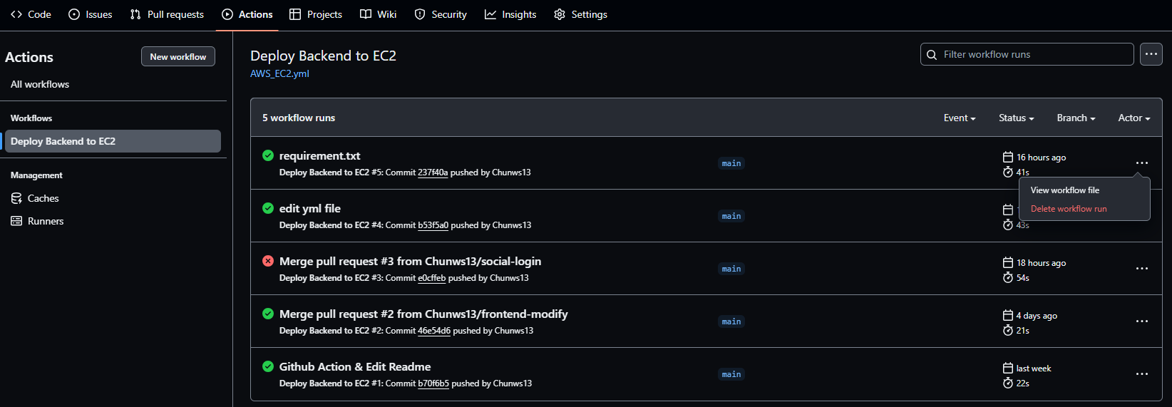 먼저, EC2 서버에 github 레포지토리가 연결되어 있어야 해당 작업이 가능한데,