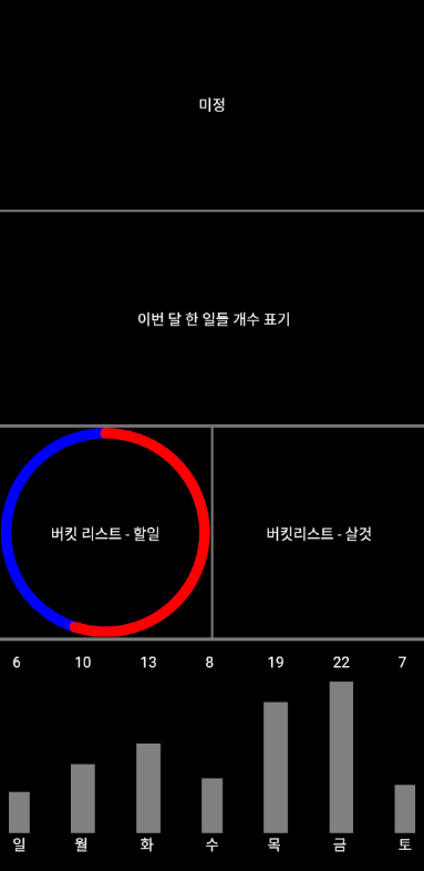 <Text style={...styles.text}> 버킷 리스트 - 할일 </Text> // 원 그래프 내부 텍스트