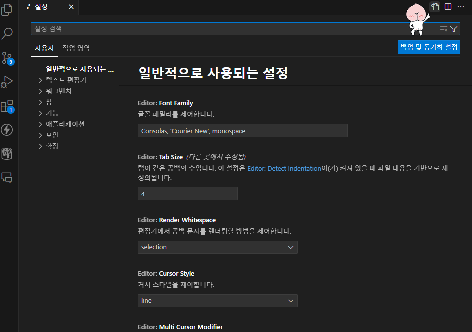"editor.tabSize": 2 // 탭 사이즈 크기 개별 설정